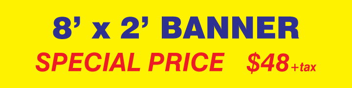 I used to live right beside BannerBanner, that's why I know him. He works out of Home. He made the 8' x 2' Grand Opening Sign. He does things really cheap. If you need him for the stuff, he is probably the best guy to go to.